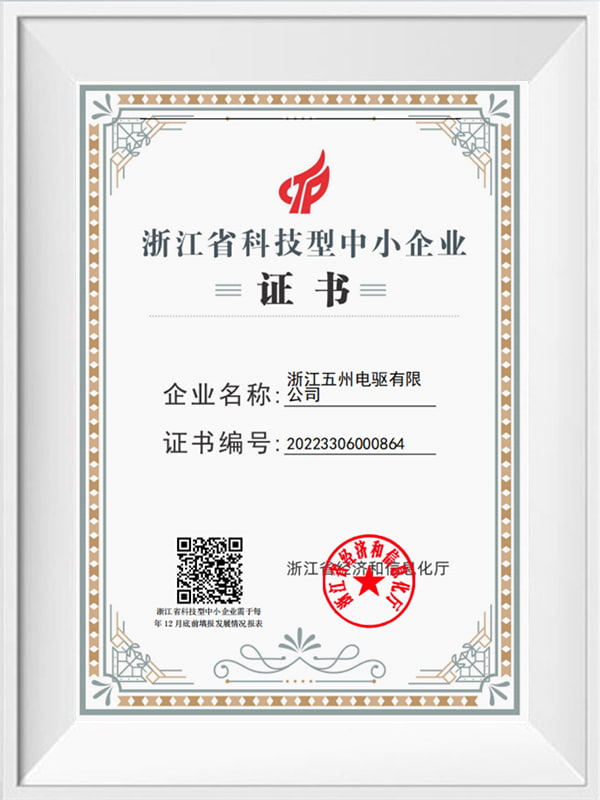 Zhejiang Province Science and Technology Small and Medium sized Enterprise Certificate